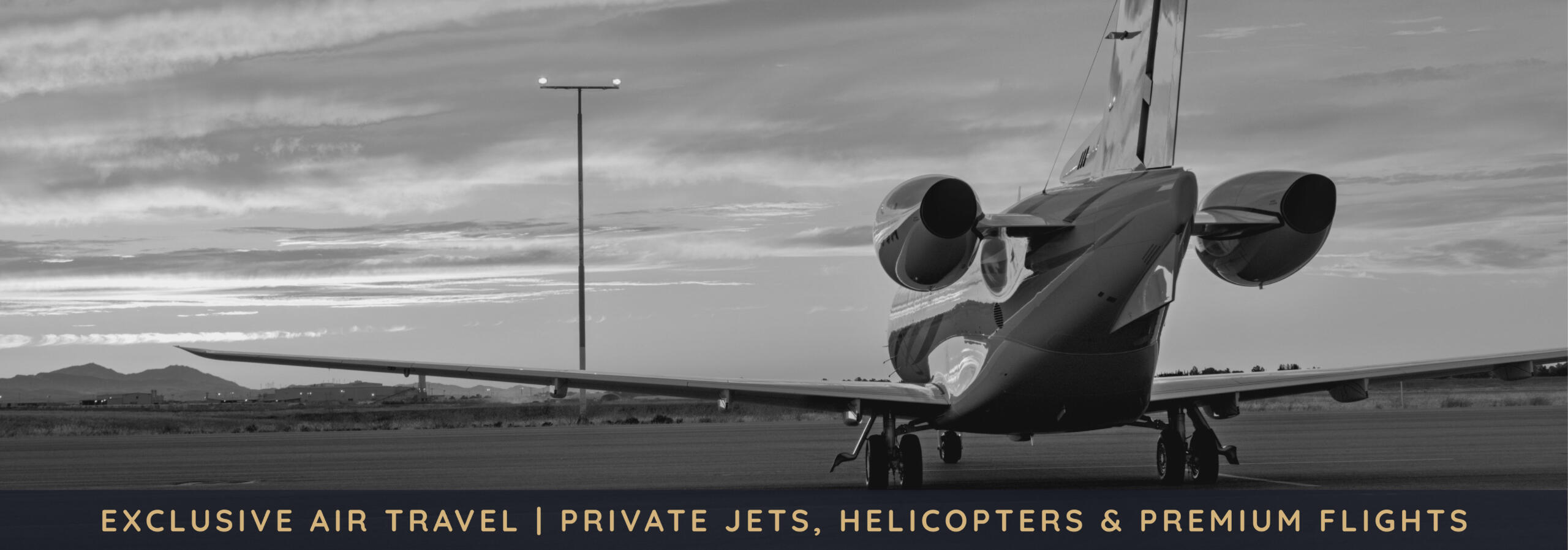 Indulge in the ultimate air travel experience. Whether you're flying in a private jet, chartering a helicopter, or enjoying the comfort of first-class flights, we provide a seamless and luxurious journey tailored to your needs.We ensure every detail is covered, from the moment you board to the moment you land.For your convenience, we also offer private transfers to and from the airport, making your travel experience effortless and efficient. Whatever your destination, travel with ease and style.